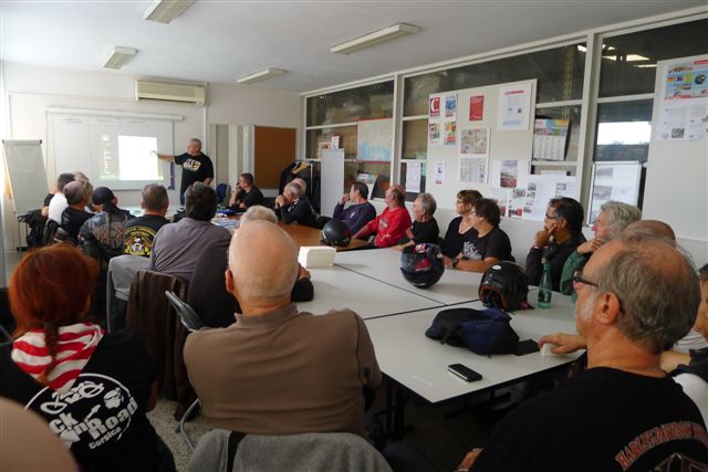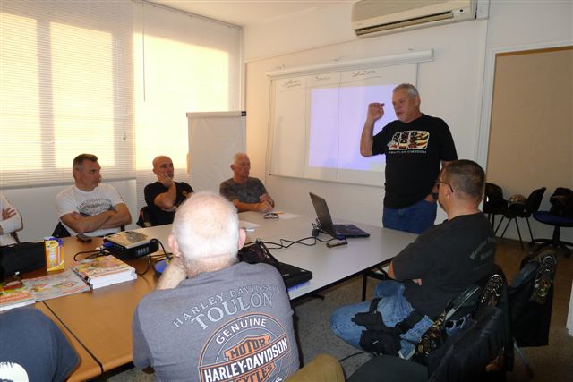 - Avec une partie théorique traitant les points suivants: La position du pilote sur une machine, l'importance du regard, l'étude des trajectoires, le freinage, l'anticipation, les mesures d'évitement, le contre-braquage, les déplacements en groupe, la conduite à tenir en cas d'incident ou d'accident lors de nos déplacements.