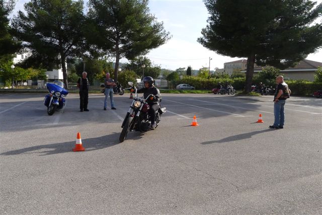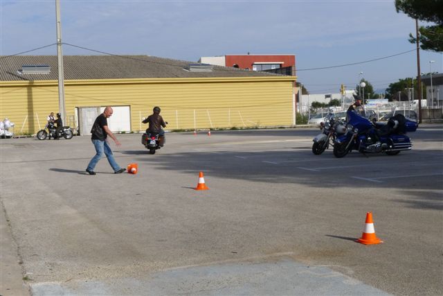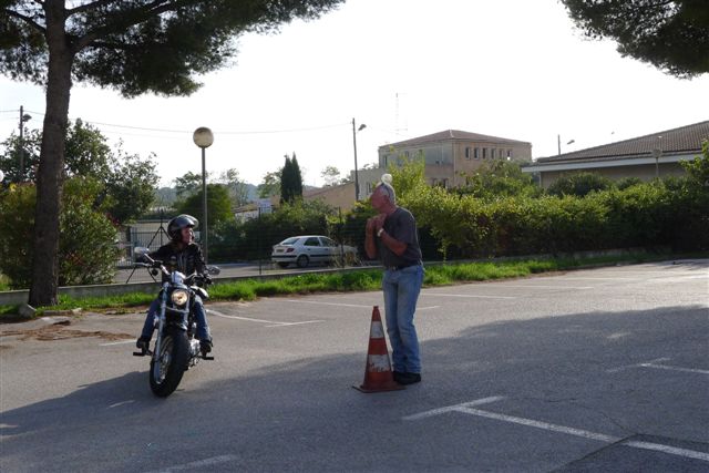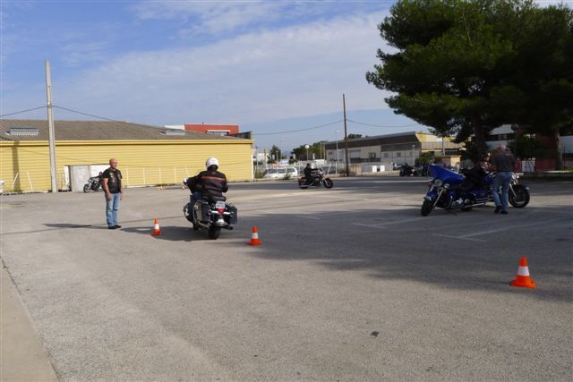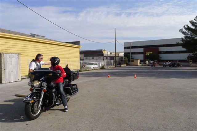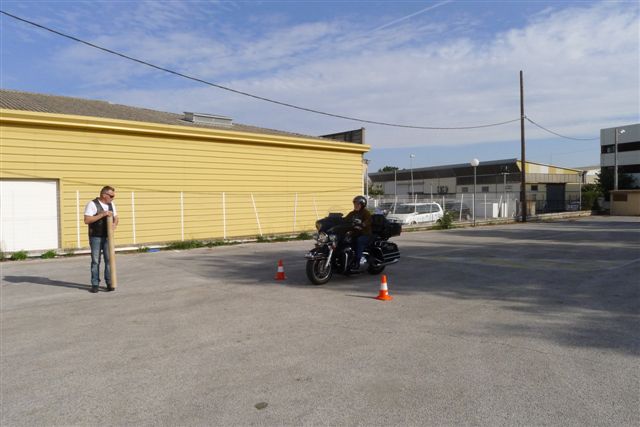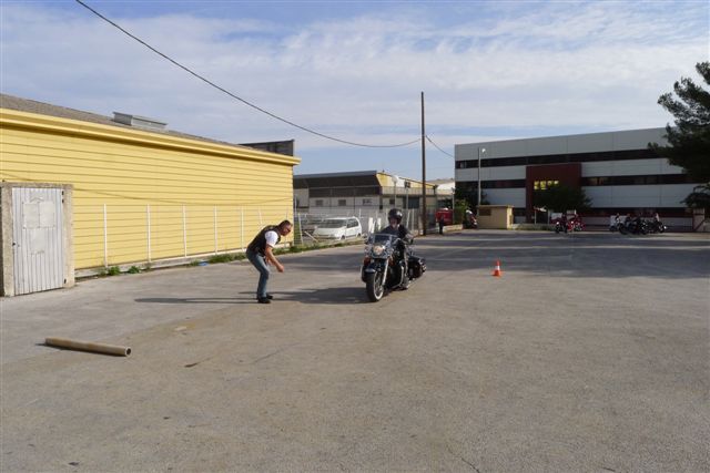 -Et bien sûr la mise en pratique: Comment relever une moto, le freinage d'urgence, les mesures d'évitement, la conduite et la manoeuvre d'une moto pratiquement à l'arrêt.