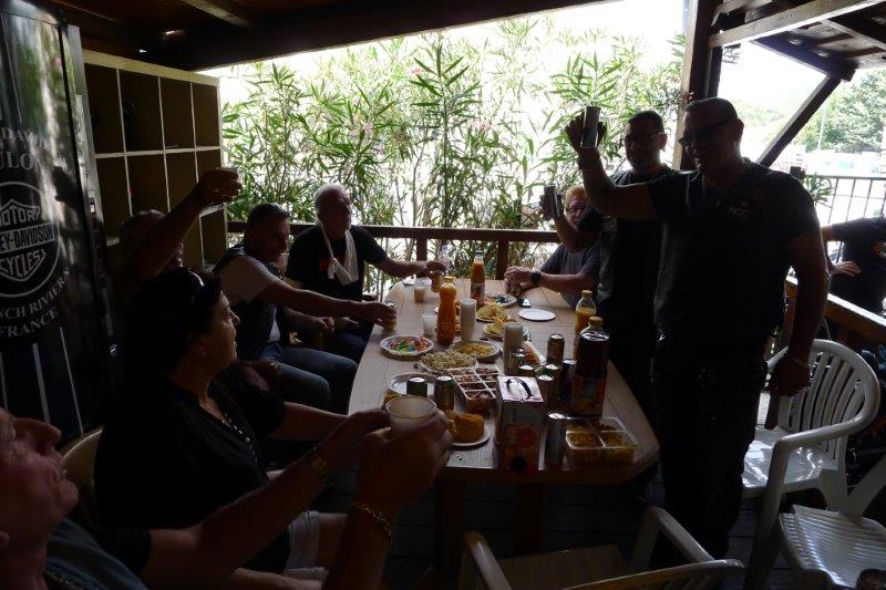 Je ne pense pas qu'il faille chercher bien loin, quand on voit avec quel plaisir et quelle sincérité ces goûters sont organisés et offerts, c'est tout simple, ils sont heureux. Heureux de l'accueil, de l'ambiance, heureux d'appartenir à la grande famille du HOG et à notre Chapter et ils le montrent, comme Jacky et Philippe ce samedi après-midi.