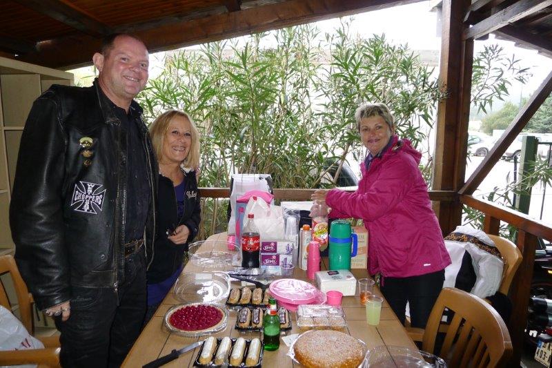 Je ne pense pas qu'il faille chercher bien loin, quand on voit avec quel plaisir et quelle sincérité ces goûters sont organisés et offerts, c'est tout simple, ils sont heureux. Heureux de l'accueil, de l'ambiance, heureux d'appartenir à la grande famille du HOG et à notre Chapter et ils le montrent, comme Isabelle, Patricia & Thierry ce samedi après-midi.