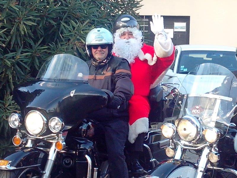 Nous avons été sollicité, par le Père Noël du Pradet, en panne de rennes !!! Nos Harley Davidson transformées en traîneaux pour l'occasion ont fait merveille auprès des participants. Merci à nos sympathiques volontaires conduits par Guy Livet.