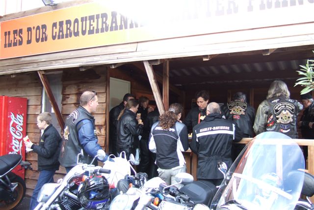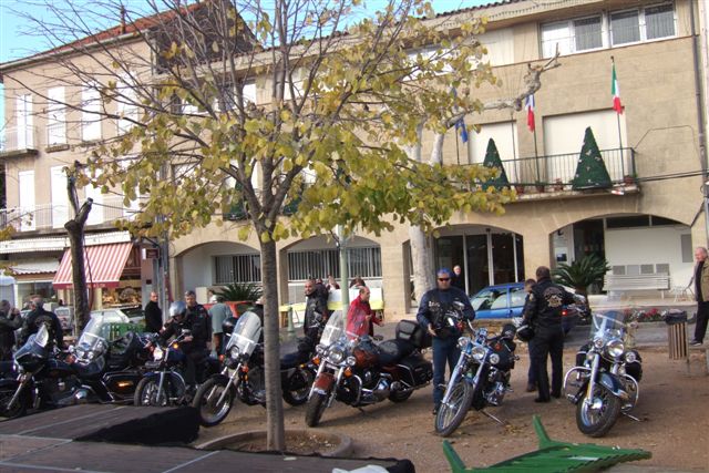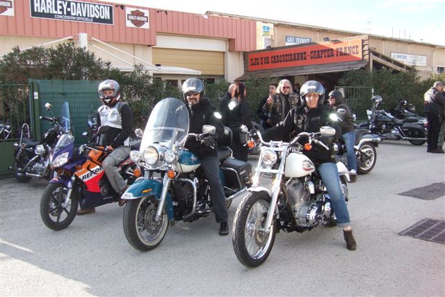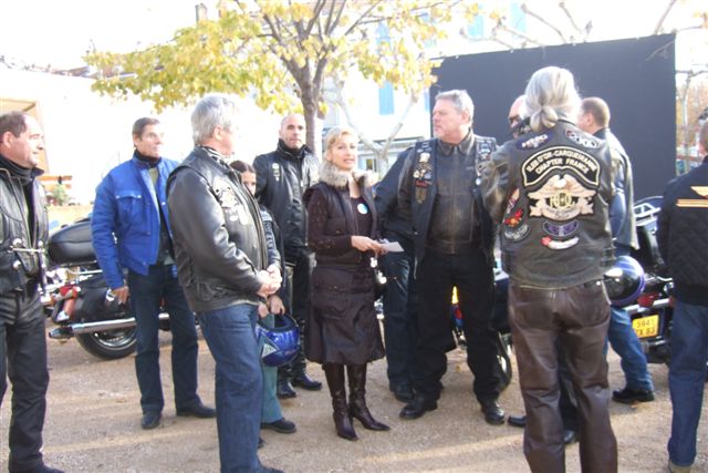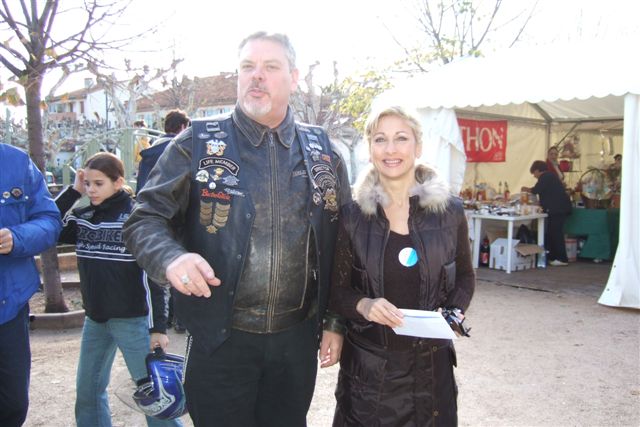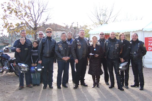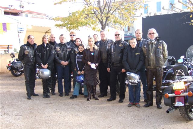 Samedi 3 décembre 2005 TELETHON 2005 Cette année, le Chapter a choisi de ne pas faire de "Baptêmes en Harley Davidson" comme les années précédentes. Notre Rallye annuel a donc été dédié au Téléthon. Les bénéfices de celui-ci ont permis de faire un don de 450 €. Une délégation de nos membres s'est rendu à Carqueiranne pour remettre, au nom de notre Chapter un chèque libellé à l'ordre de l'A.F.M. Téléthon, à madame Fabienne Giraud, épouse du Maire de cette cité et Présidente de l'Association "Le Chêne et le Roseau" qui organise cette manifestation caritative sur notre commune. Les sommes collectées à Carqueiranne représentent