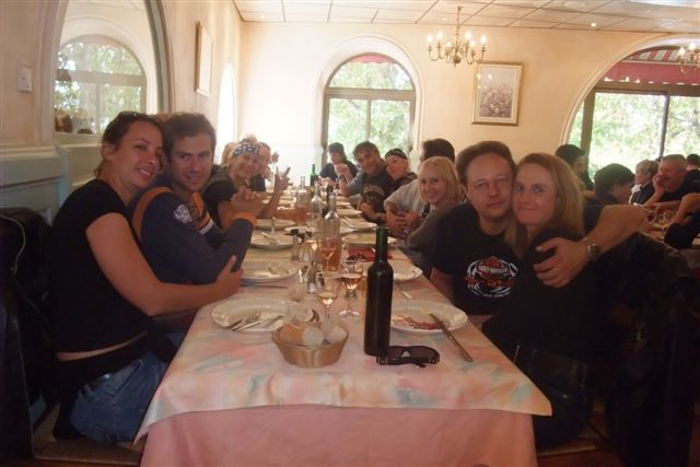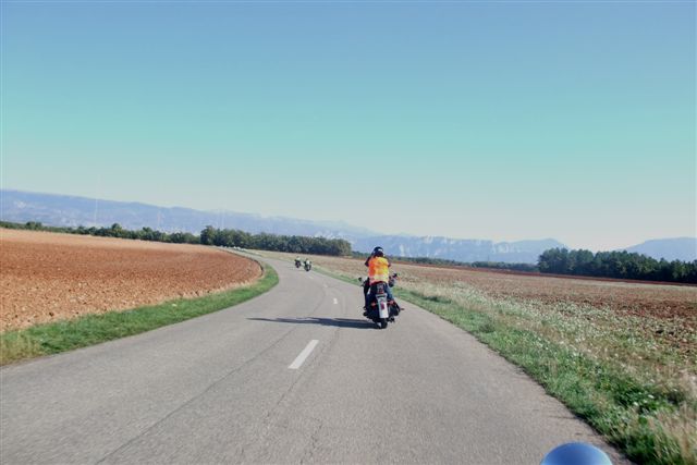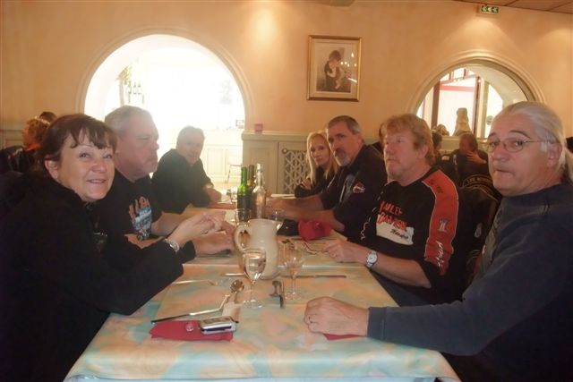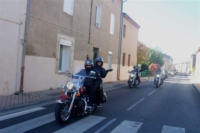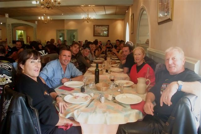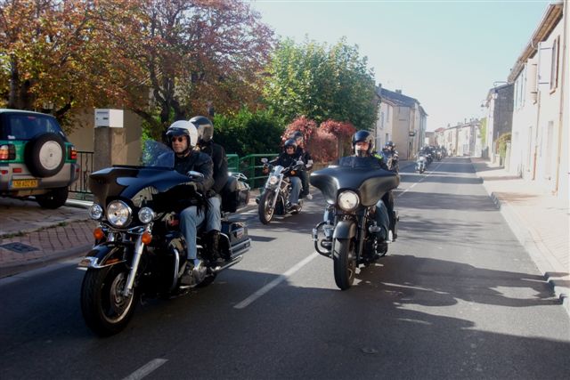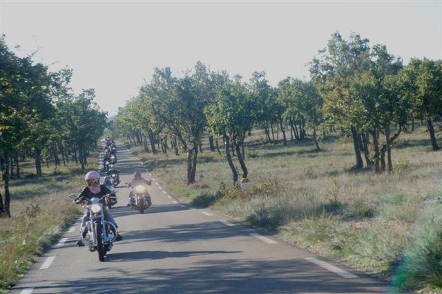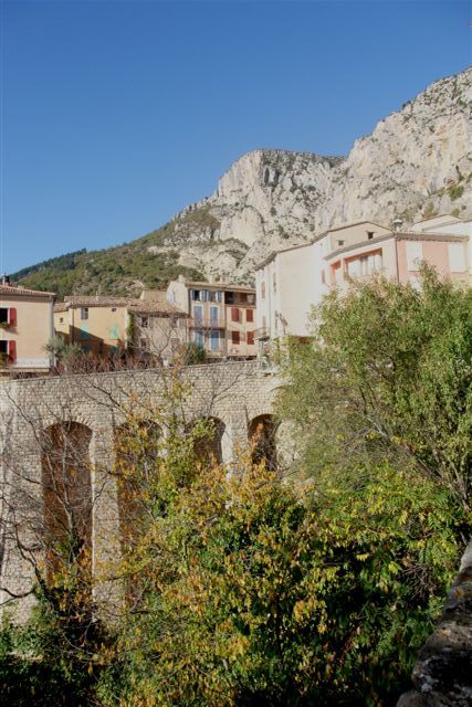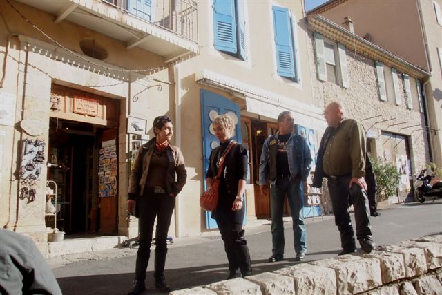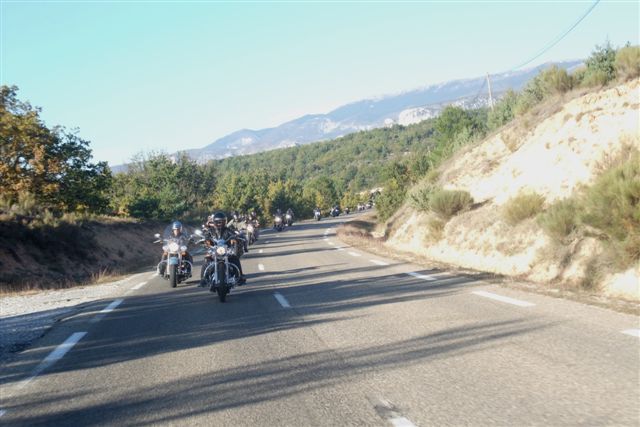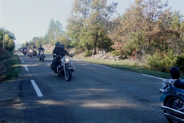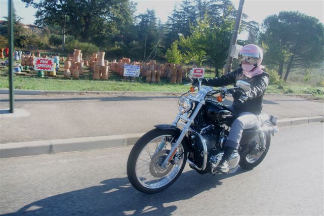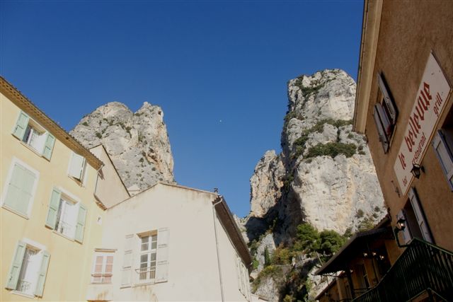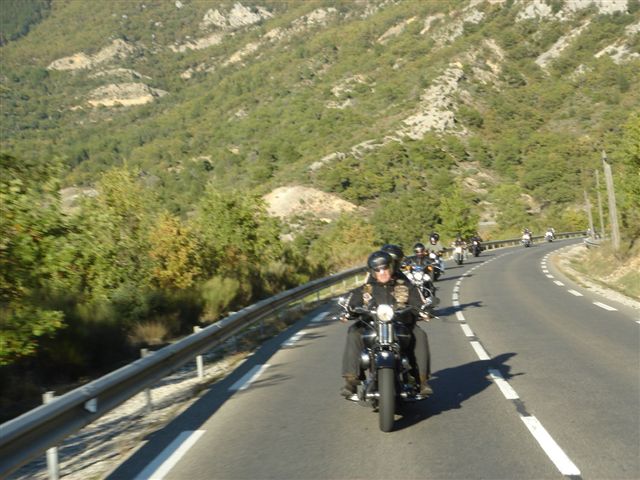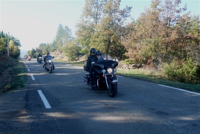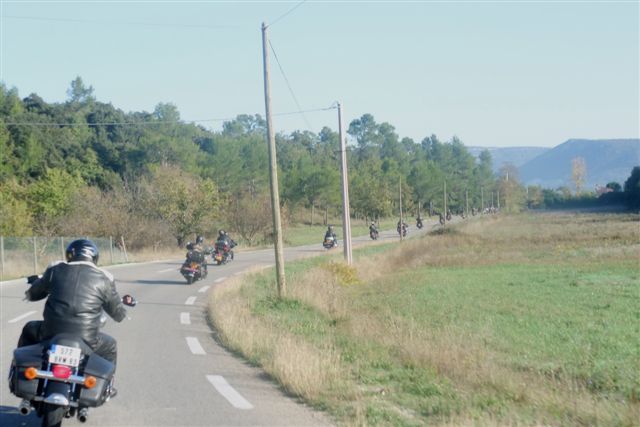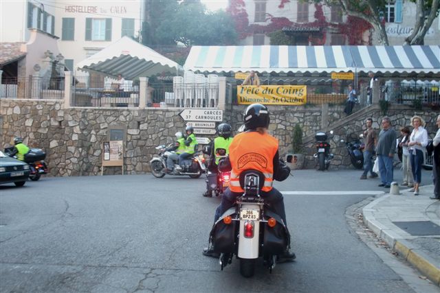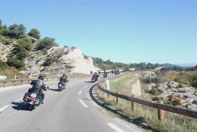 Balade à Moustiers Ste Marie Dimanche 26 Octobre 2008 §§§ "Moustiers Sainte Marie", ce haut lieu de la faïence Provençale , est de plus un nom de destination qui sonne bien et qui pousse à la balade. La preuve en est le succès de cette randonnée automnale où nous étions presque 50 motos. Après un joli parcours sur nos bucoliques départementales et une pause café à Vinon sur Verdon au milieu d'un marché animé, nous voilà à " La Bonne Auberge ", il faut le dire un très sympathique restaurant, une cuisine et un service impeccables ainsi qu'un accueil très chaleureux. Puis, pour digérer, rien de mieux que de flâner à pied dans les ruelles de ce charmant village, niché au sortir de cette faille où la bonne étoile veille sur la cité. Puisque c'est d'astre que nous parlons, le nôtre, entendez le Soleil, était bien présent, imposant sa trêve dans la grisaille du moment !!! Une super journée, à quand la prochaine ? §§§