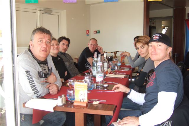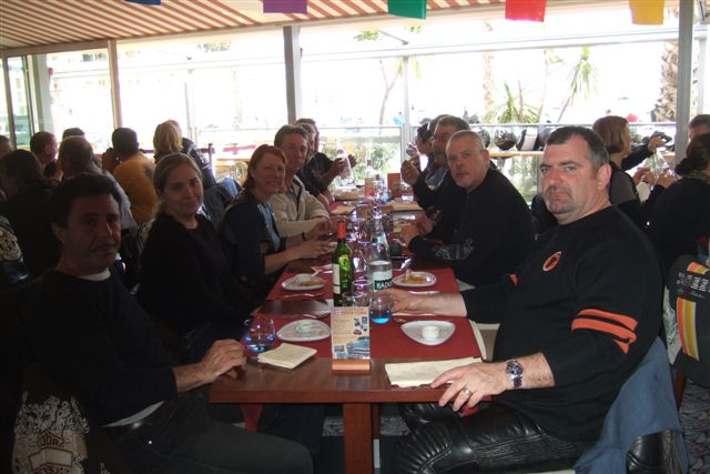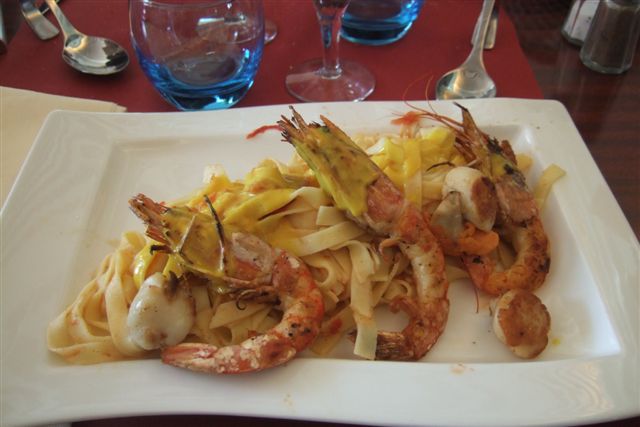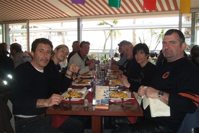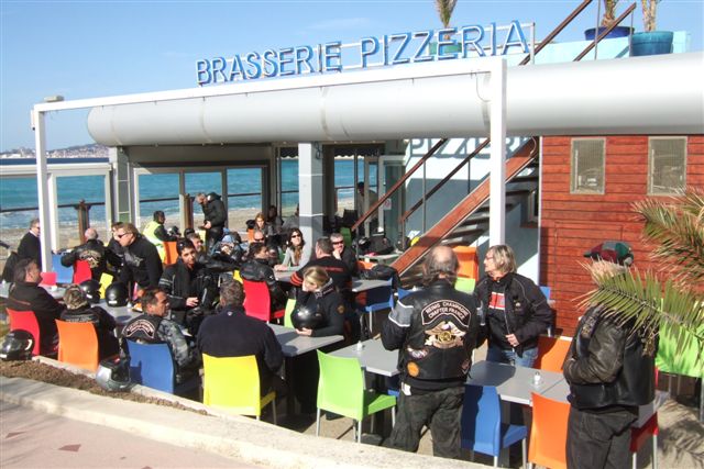 Les Tagliatelles aux Gambas et aux Noix de St Jacques §§§ Dimanche 16 Mars 2008 Je me vois dans l'obligation de changer le nom de cette balade. Ces "Oursins" tant attendus, tant désirés, tant imaginés déjà, cette couleur corail, ces odeurs d'iode et de pain chaud mêlées, ces oursins rêvés n'étaient pas au rendez-vous de l' assiette. La nature a décidé de leur accorder un sursis et ses éléments en furie ont empêché les cueilleurs de les arracher à leur mer nourricière. Mais, aidé par la qualité de l'acceuil et de la prestation culinaire du restaurant du "casino Barrière" de Carry le Rouet, notre déception fut de courte durée et vite oubliée. A la fin du repas, Thérèse, Marianne, Michel et Marc se sont vu remettre officiellement les insignes du Chapter. Ce délire des papilles, me fait presque oublier la balade, qui nous a fait admirer ces paysages de roches nues et déchiquetées de cette partie de notre belle côte Provençale, de Cassis à Carry le Rouet. §§§