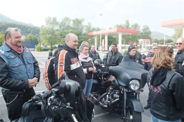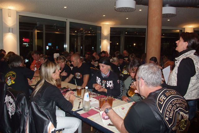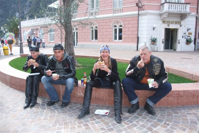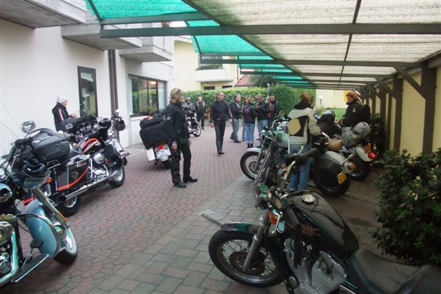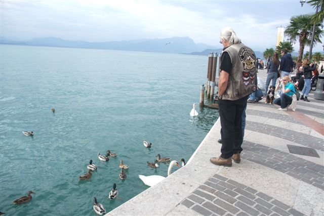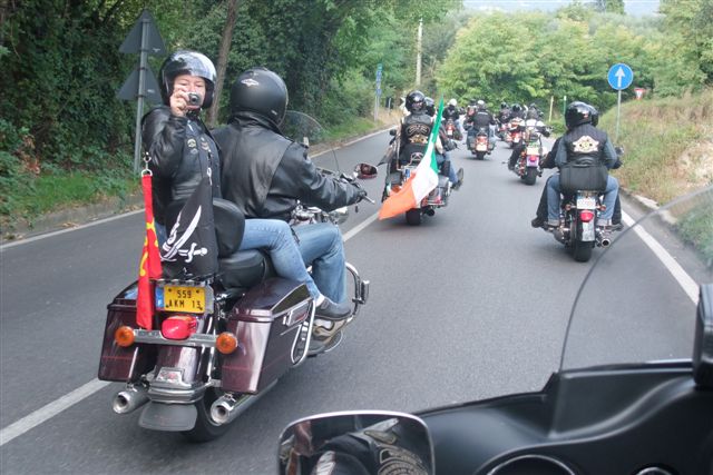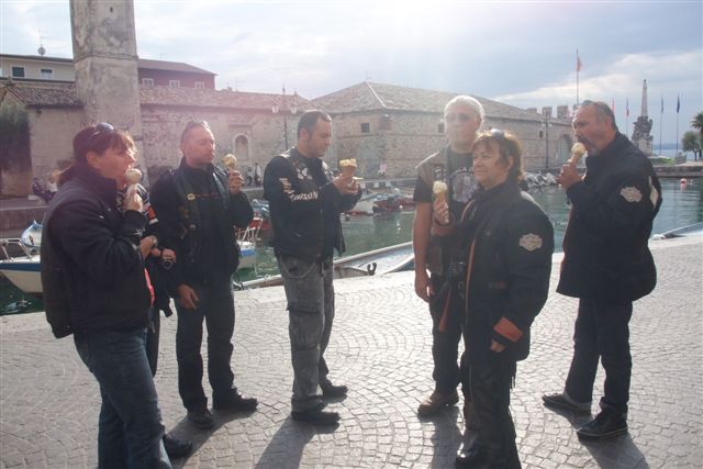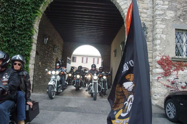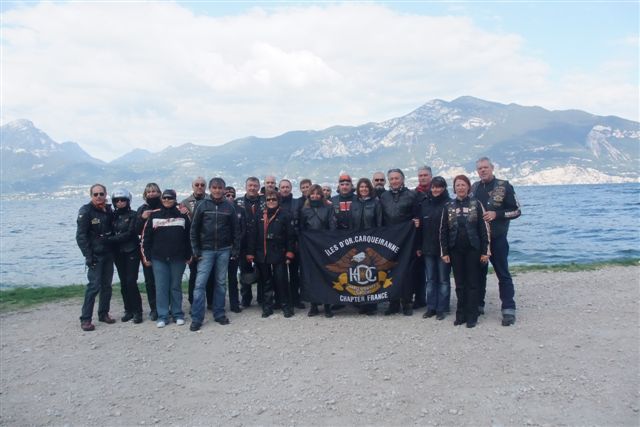 17ème European Du Mercredi 24 au Dimanche 28 Septembre 2008 §§§ C'est pas moins de 40 membres de notre Chapter qui se sont retrouvés pour le 17 ème European HOG Rallye au Lac de Garde en Italie. Si à l'aller les départs se sont répartis entre le mardi et le mercredi, le retour s'est fait en un seul groupe et je peux vous garantir que nous avons formé un très beau convoi sur les 580 km du parcours. Ce fut un très beau rallye, sur un site agréable, dans le cadre fantastique du Lac de Garde et surtout, de part l'accueil chaleureux des Chapters Italiens en général et du Chapter de Brescia en particulier, ce dernier nous ayant organisé une balade et invité à une soirée, qui j'en suis persuadé resteront dans les mémoires !!! Félicitations à tous les membres du Chapter ayant participé à ce beau voyage. En effet il faut souligner que malgré le nombre, celui-ci s'est déroulé impeccablement dans une ambiance extraordinaire. Coup de chapeau aussi aux nouveaux membres qui, malgré leur peu d'expérience dans les déplacements en groupe ont assuré, ce n'est pas toujours évident de rester concentré sur des centaines de kilomètres, il est évident que parfois il faut faire un petit effort et avoir l'esprit de groupe. §§§