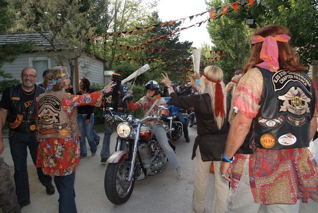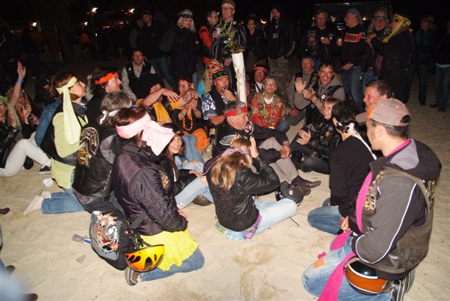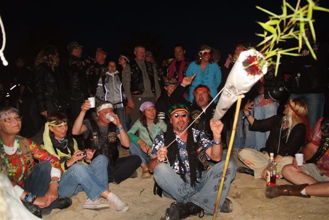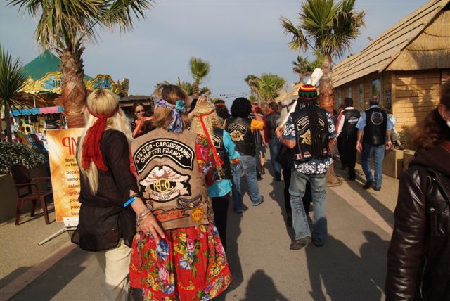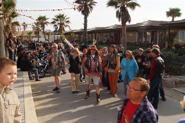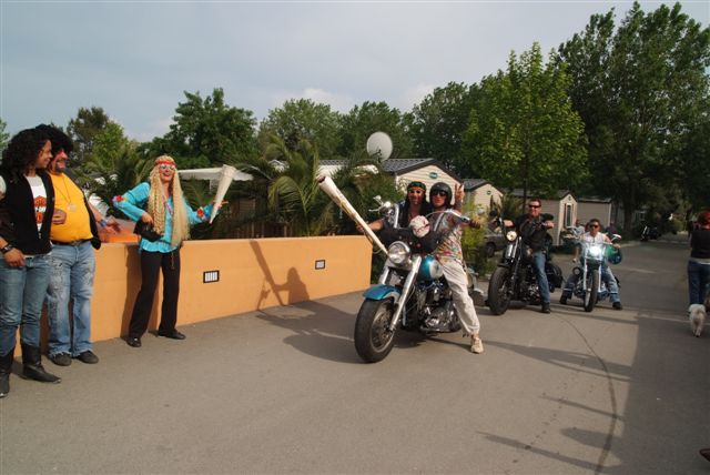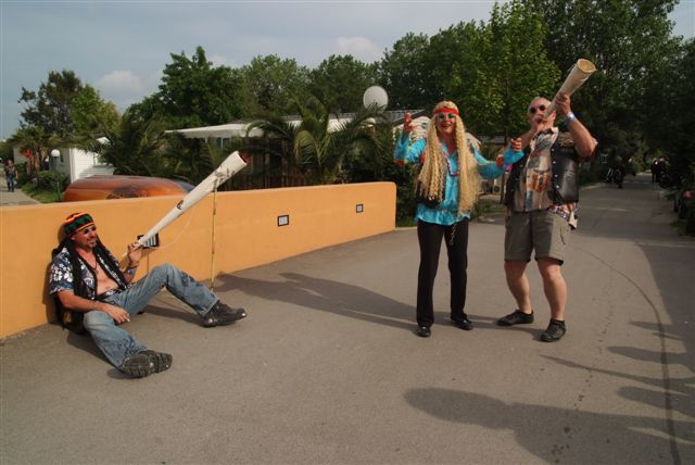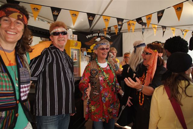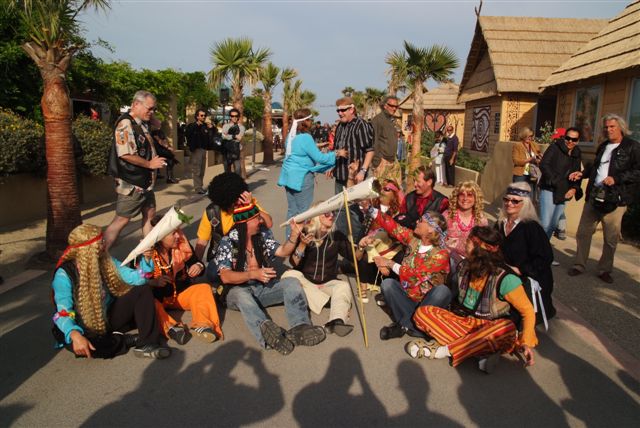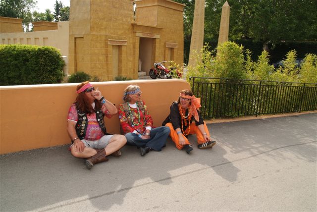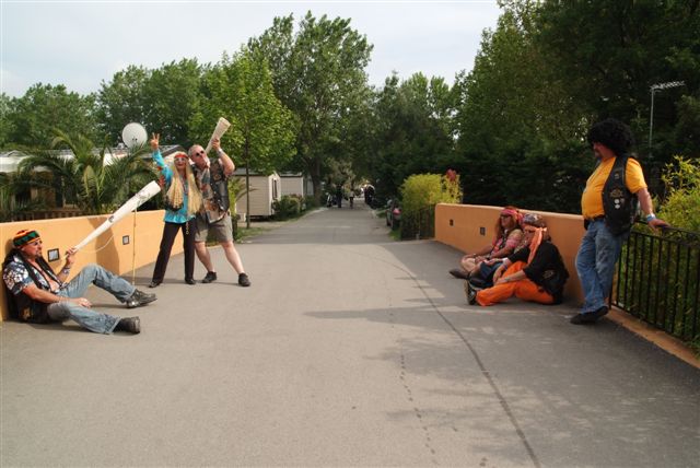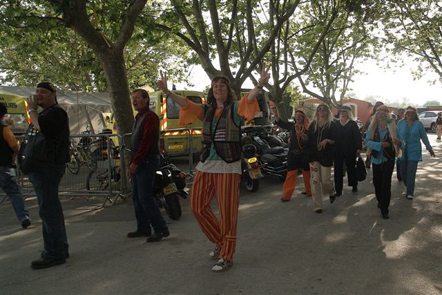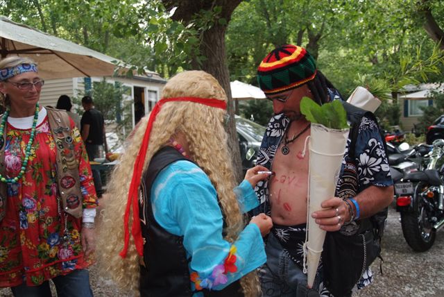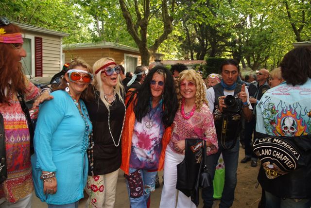 Parés de magnifiques accoutrements qui auraient fait pâlir d'envie Janis Joplin, nous traversons le camp en délivrant nos messages d'Amour et de Paix et rencontrons d'autres "sœurs et frères", animés du même désir festif.