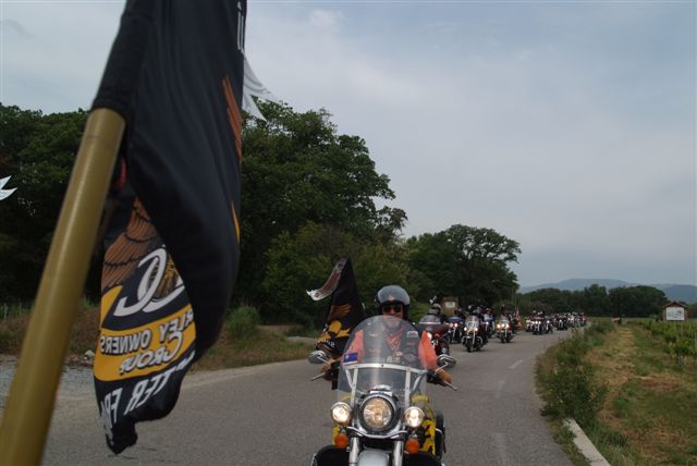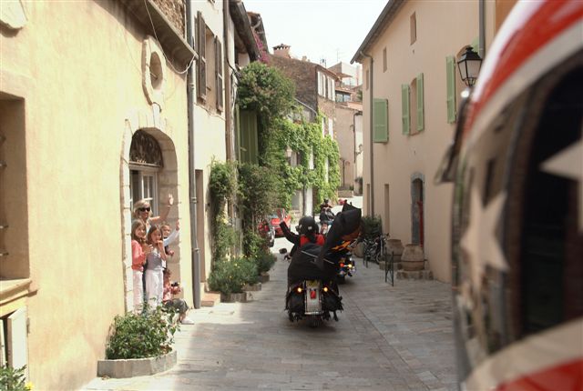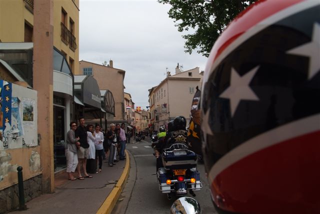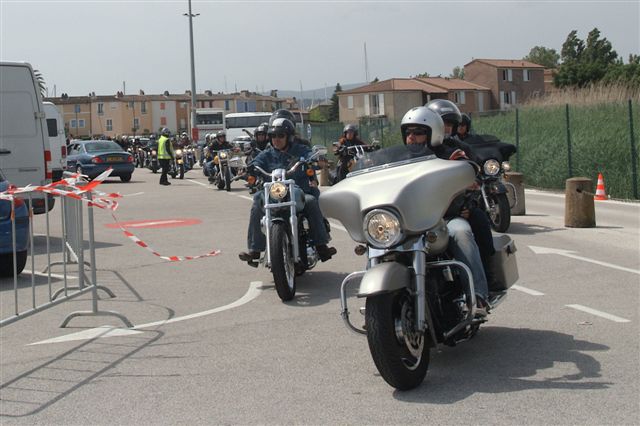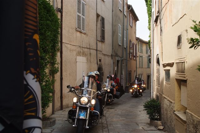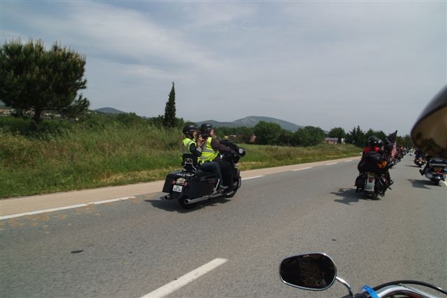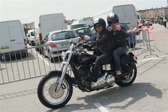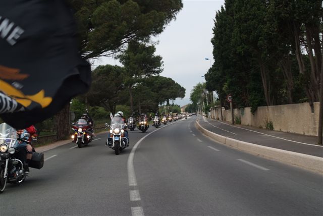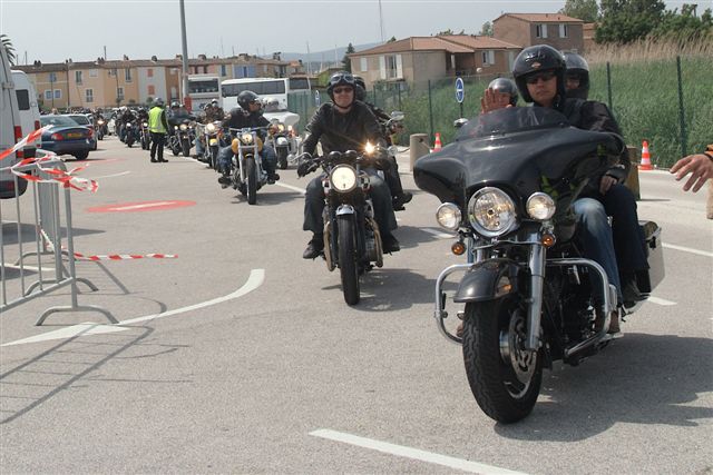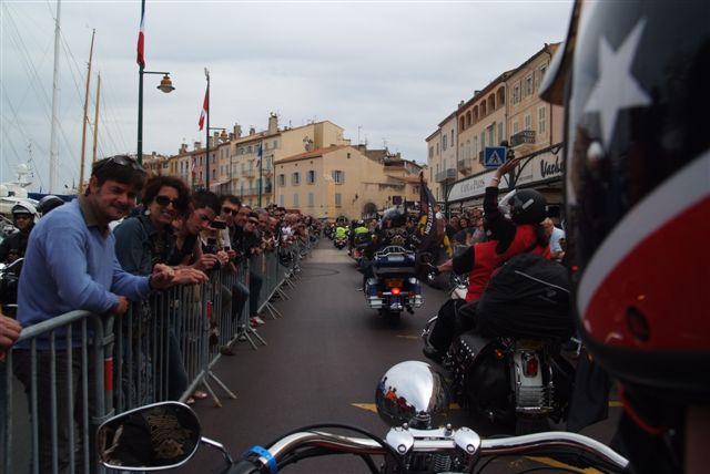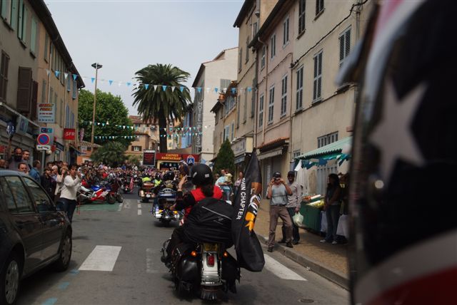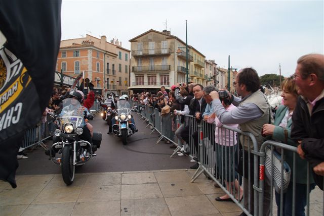 EUROFESTIVAL GRIMAUD §§§ Dimanche 10 Mai 2009 §§§ Hé oui c'est déjà le dernier jour, mais c'est aussi le jour de la grande parade. La pluie tant redoutée, nous a oublié, contrairement à 2008 où la parade avait du être annulé. Le parcours, s'il est sans surprise a, sauf erreur de ma part, été modifié dans St Tropez, pour le bonheur de tous, le passage sur le port entre les barrières débordantes de monde est particulièrement émouvant. Une belle parade menée de bon train par une impeccable organisation. L'heure du départ et des adieux a sonné, les bagages sont prêts. Pour notre Chapter c'est l'heure du bilan : C'est sans nul doute notre meilleur « Grimaud » depuis 2001 !!!! A l'année prochaine ? Sûrement !!! §§§