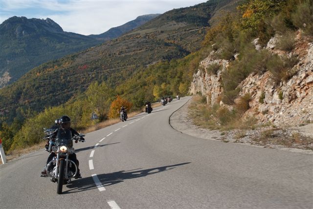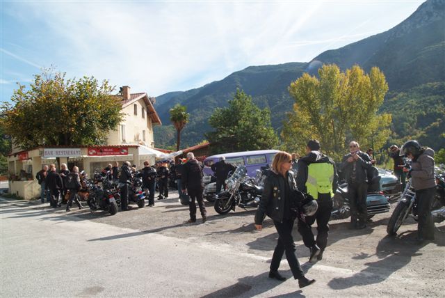 Après un sympathique et copieux repas pris à l'auberge bien nommée, puisque "Auberge des Gorges du Cians", les quarante deux machines ont remonté le Cians sur les dix petits kilomètres de la D28 ouverts à la circulation.