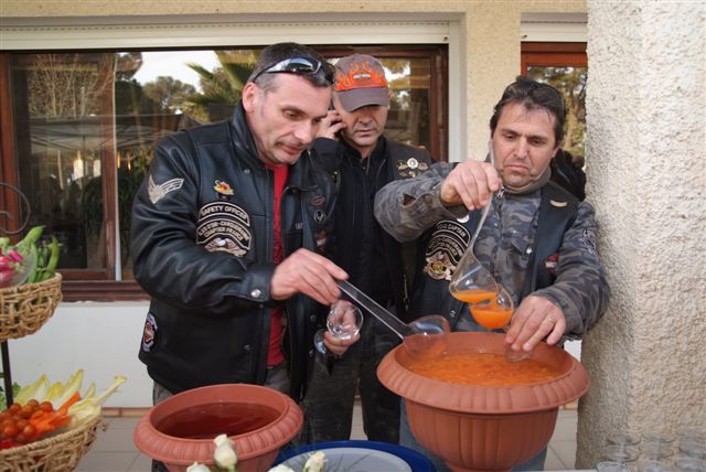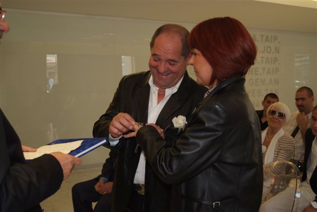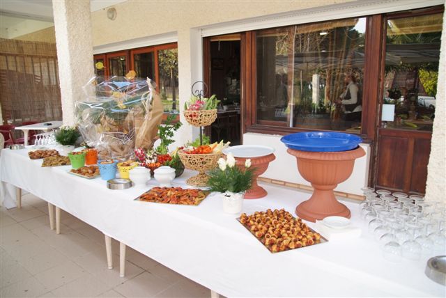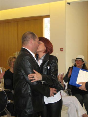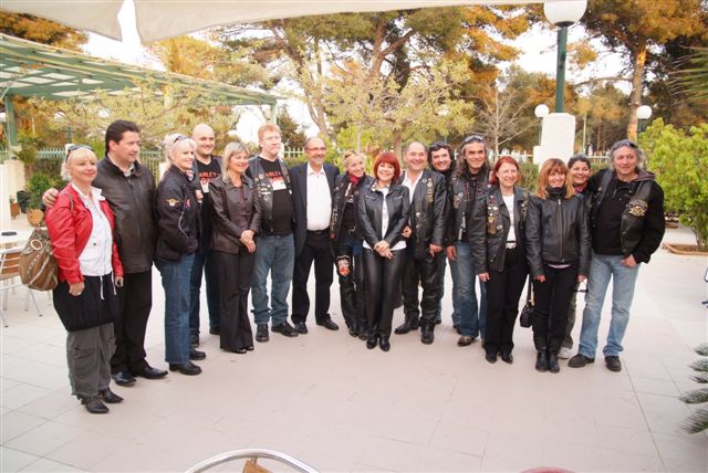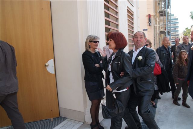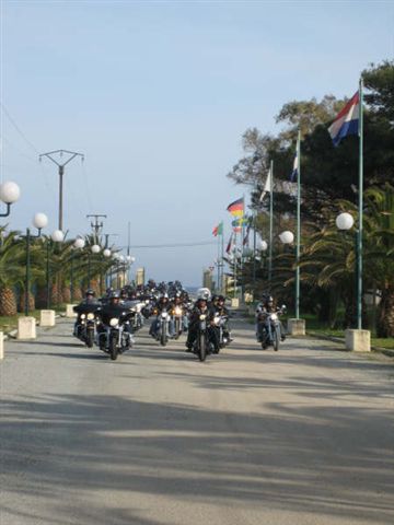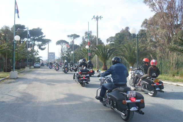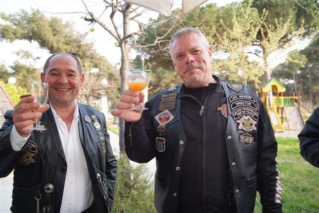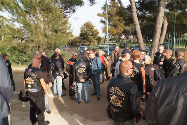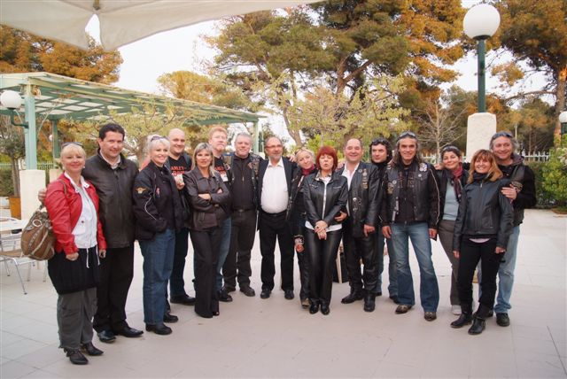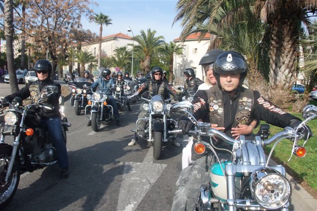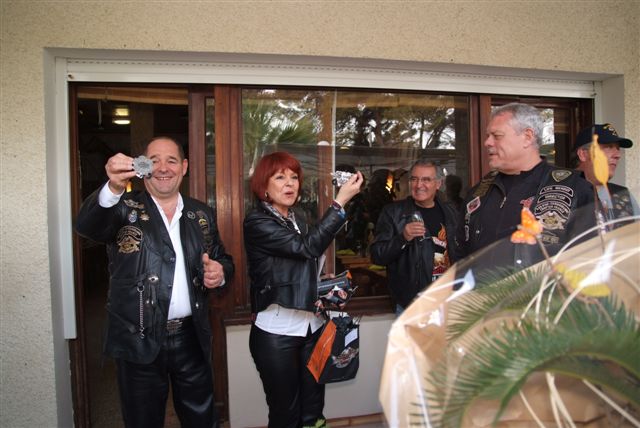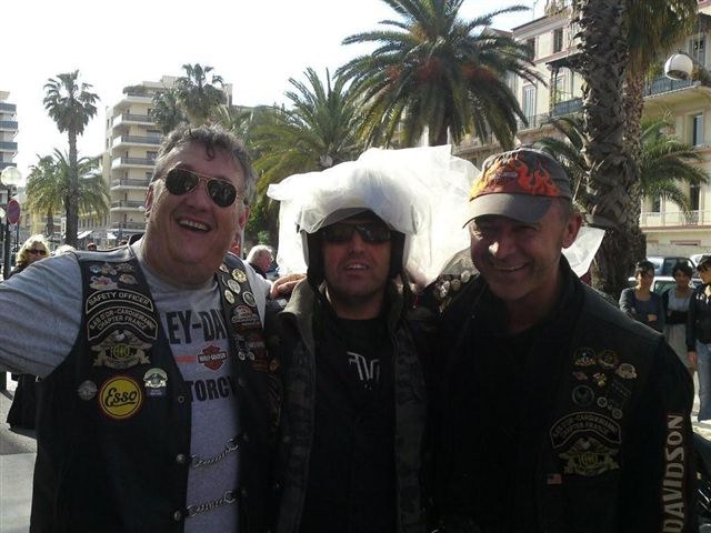 de Harley-Davidson a escorté les jeunes mariés du domicile des promis à la Mairie d'Hyères les Palmiers, puis le joyeux et tonitruant cortège s'est dirigé au travers des rues animées de la cité, vers le Port et les plages, pour arriver aux "Pins Maritimes" où un buffet d'honneur l'attendait.