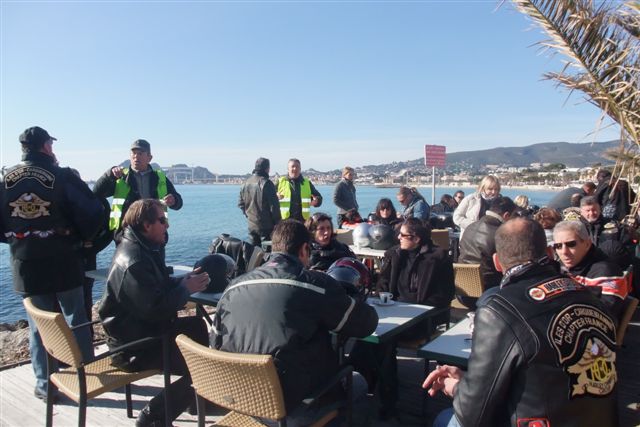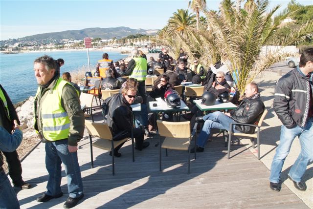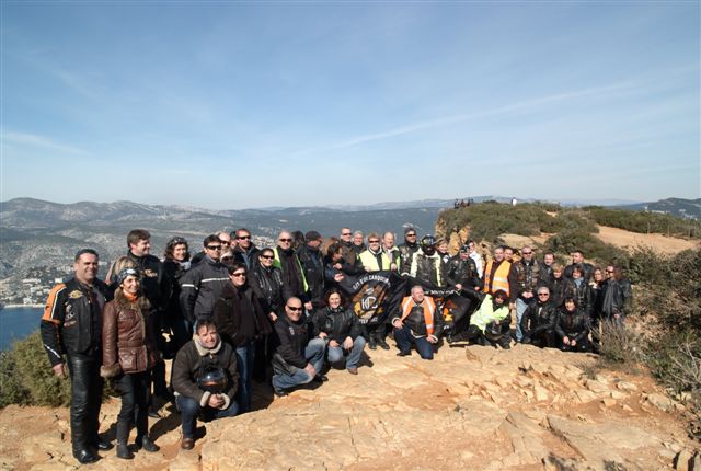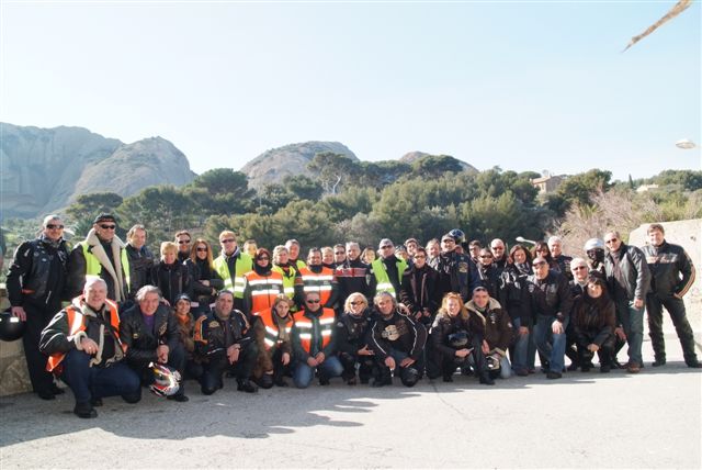 CALANQUES ET CRETES §§§ Dimanche 15 Février 2009 §§§ Première balade de l'année, 58 membres, 36 motos, 1 soleil, 1 (Lot) de belles routes, 1 (Paquet) de chouettes points de vue, 1 (Rencontre imprévue) avec le sympathique Sun South Coast Nice Chapter, 1 restaurant, 58 couverts et 1 (Max) de bons copains (Et aussi de copines, pardon mesdames). Je ne sais pas si tous ces chiffres peuvent faire une belle équation, mais le résultat est là, empirique certes, mais POSITIF A 100% !!! Look at the smiles on the pictures §