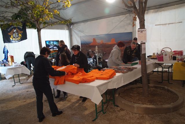 Notre Chapter, avec le soutien de notre Concession, a organisé des Baptêmes en HD, la Vente de T-shirts commémoratifs et de Revues d'occasion, une Tombola, la réalisation de Photos souvenirs sur une HD devant notre traditionnel décor de "Monument Valley", avec en plus cette année, d'une part un "Poker Winner's" avec plein de lots à gagner et d'autre part la vente d'objets réalisés par Ghislaine et de petits gâteaux faits maison par Babeth !