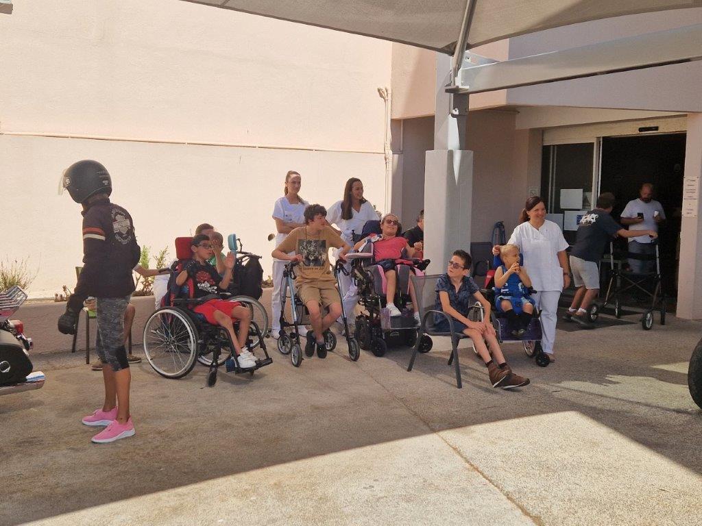 Sur une idée de Christophe, en remerciements aux soins prodigués à son fils Julian par le personnel de l’Institut de Rééducation Pomponiana-Olbia, notre Association a organisé, à leur intention, une demi-journée « Baptêmes en Harley-Davidson ».