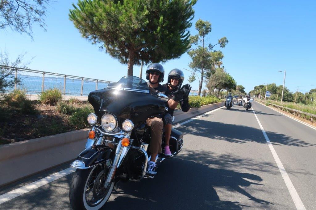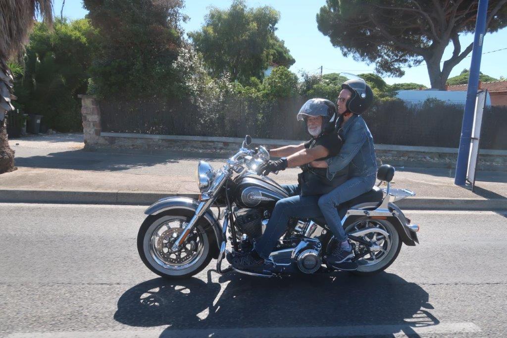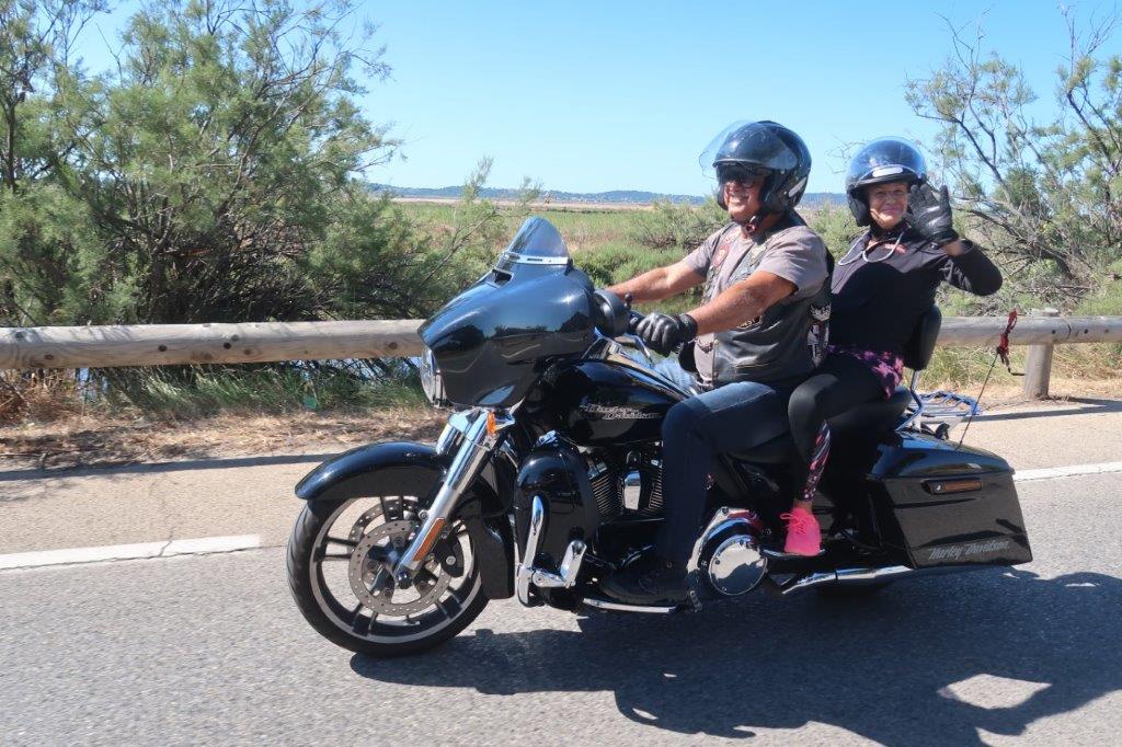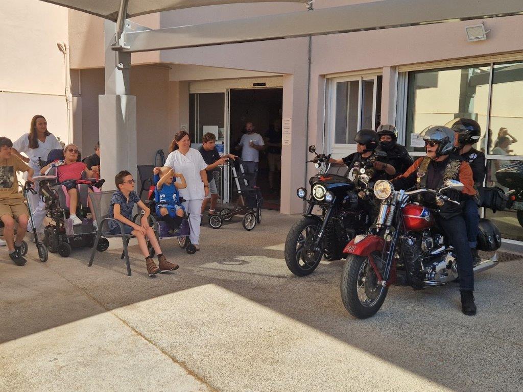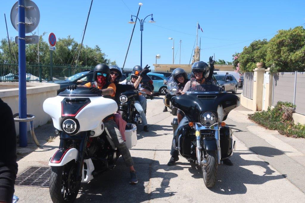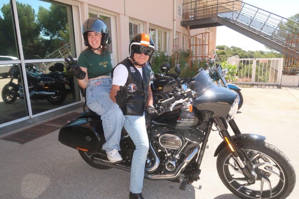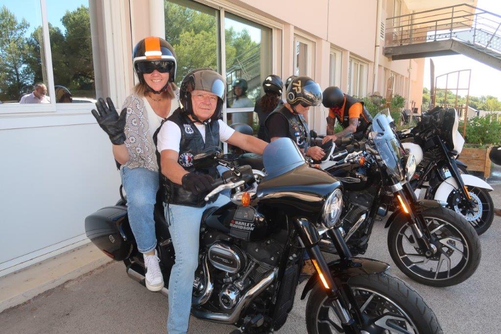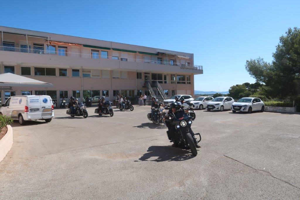 Sur place, notre modeste participation a animé « bruyamment » la matinée des patients et des soignants, ceci avant que deux cortèges successifs, dans une boucle jusqu’aux Salins d’Hyères, fassent découvrir au personnel volontaire le plaisir de rouler en Harley-Davidson.