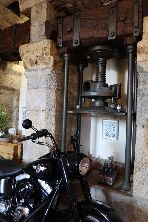 Accueilli par un biker, dans un authentique moulin à huile d’olive.