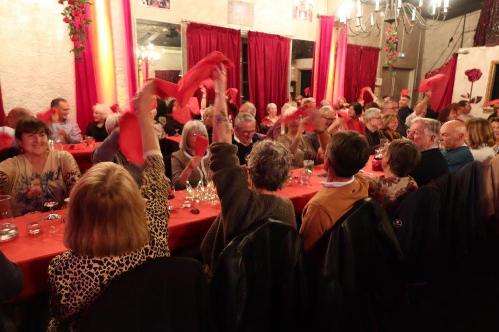Témoin d’une remarquable organisation, qui se confirmera tout au long de la soirée, des marques de « choix de menu » sont placées devant chaque convive pour faciliter le service.