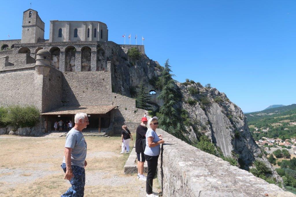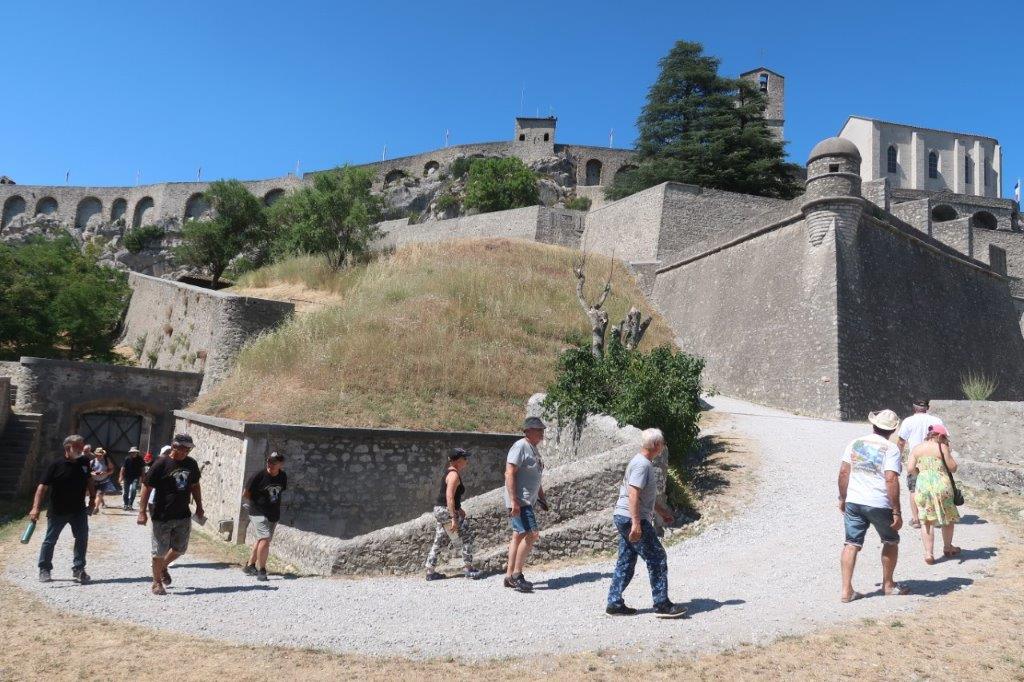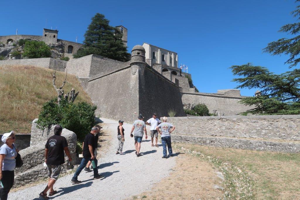 Après une pause-café sur les bords du lac de Ste Croix, un pique-nique à Bras d’Asse, un bel accueil à l’hôtel Tivoli et surtout une bonne douche bien méritée après ce périple sous un soleil harassant, c’est avec un certain courage que nous gravissons la colline qui monte à la citadelle.